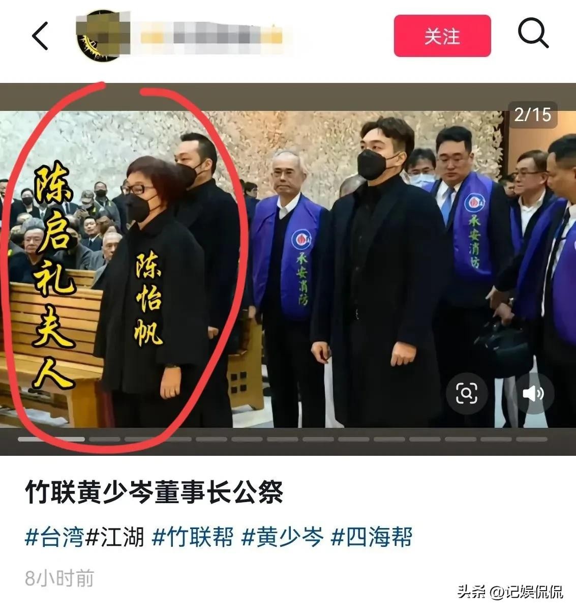 “竹联帮”前任帮主陈启礼的妻子陈怡帆,这次也罕见出席。