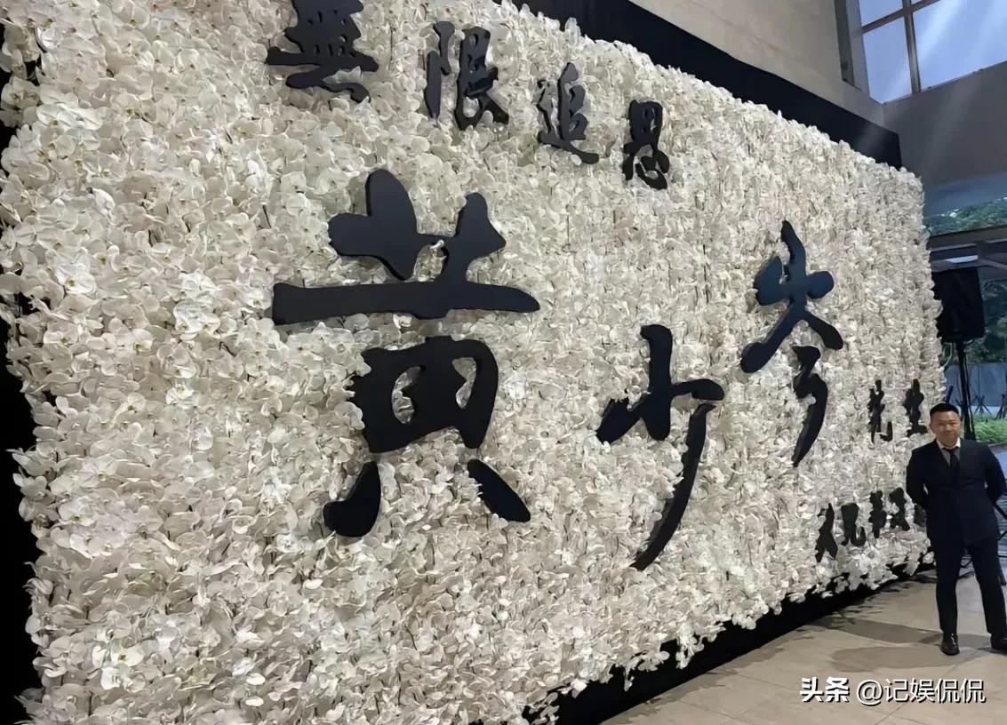 黄少岑的灵堂曝光,布置十分的简约普通,他的遗照做成了喷绘布摆在中间,前面则是一座巨大的“花山”,除了两边摆放的嘉宾座椅外,几乎没有其他的装饰装扮。
