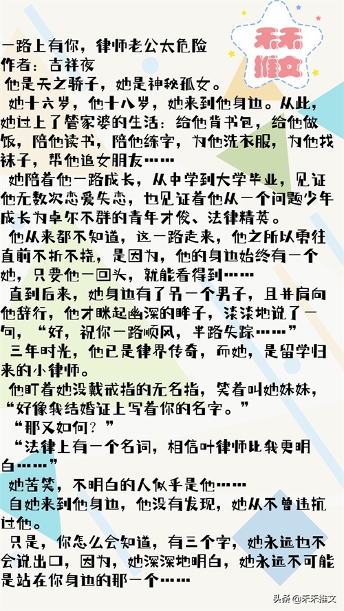 因为禾禾看过的好文太多了,有时在写同一类型的文章后,才想起来还有其他好看的作品,之后禾禾还是会为大家继续推荐的。争取为大家带来更多好文。