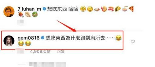 但是粉丝自然是不会拆台爱豆啦,但是耿直的邓紫棋也发现了,于是邓紫棋评论鹿晗:“想吃东西为什么会跑到厕所去?”不知道鹿晗看到这个评论会不会觉得很尴尬?邓紫棋的这个评论也是引来了很多人的围观,不少人都希望邓紫棋给鹿晗留个面子。