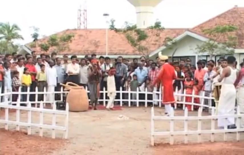 在一片居民房中间的空地上,周围的观众们紧紧挨在一起,和他们坐火车的情景有得一拼。而在白色栅栏围成的表演场地上,一个皮肤黝黑的苦力,带着一个米缸大小的竹筐和一根粗大的麻绳,毕恭毕敬地等候着。(仔细观察这片空地,或许你就能破解“通天绳”的奥秘了)