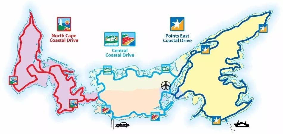 沿着爱德华王子岛的海岸线总共有三条迷人的公路,每一条都独具风情。在North Cape Coastal Drive,你能领略到米克马克人(Mi'kmaq culture)的文明(米克马克人是首次被卡伯特(John Cabot)遇见的原住民,据说他们有着非常讲究的礼仪)和阿卡迪亚(Acadian culture)文化(虽然同说法语,阿卡迪亚人的文明和我们认为的法国文化可是截然不同)。除此之外,你还能在这里找到各种有趣的船屋和野生动物。