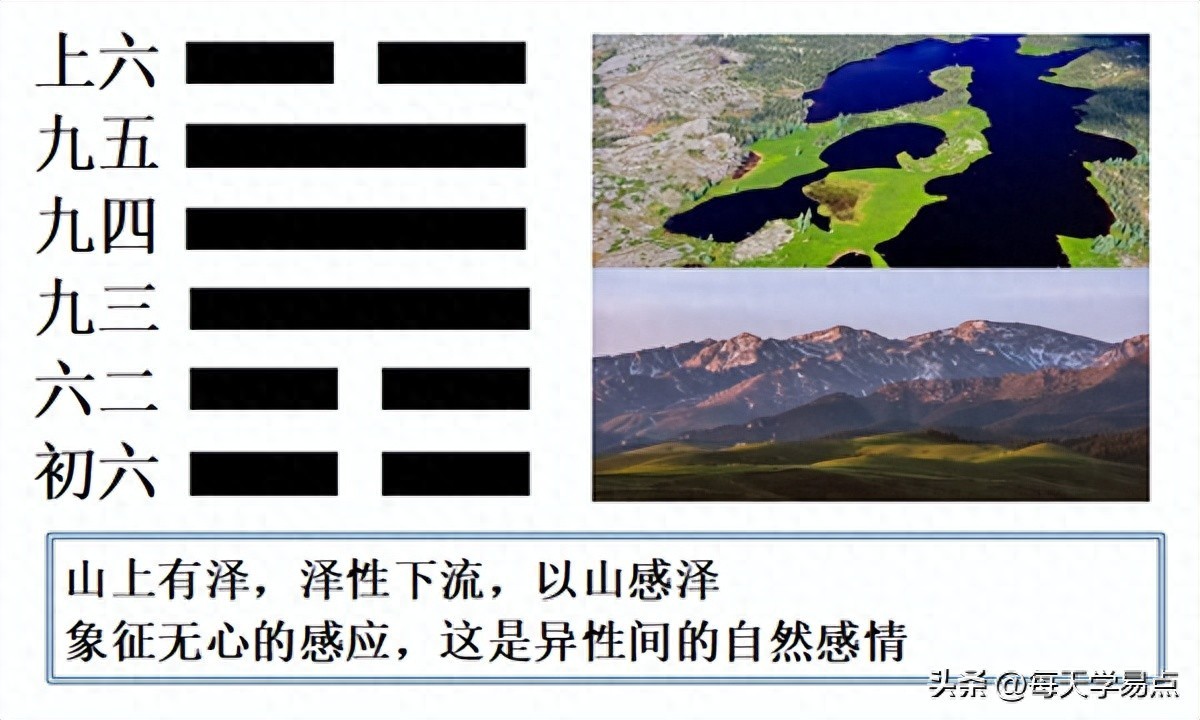 象辞说:山上有泽便是咸卦的卦象。君子从卦象中得到启发,虚心接受别人的意见。