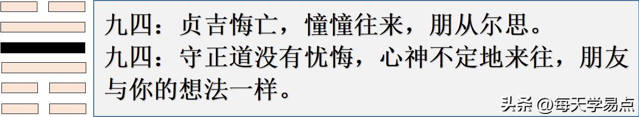 九四:贞吉悔亡,憧憧往来,朋从尔思。