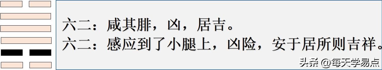 【启示】六二爻位于下体的小腿肚,对应着走路时肌肉先动的情况。与六二相应的是九五爻。在男女感应中,九五代表着男子,而六二则隐喻女子有着急躁和冒进的倾向。
