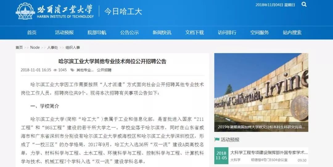 公告发布网站:哈尔滨工业大学
