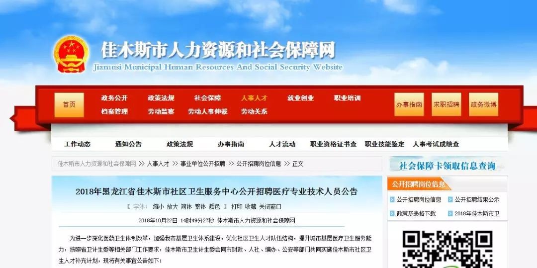 公告发布网站:佳木斯市人力资源和社会保障网
