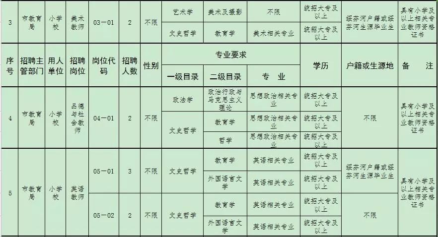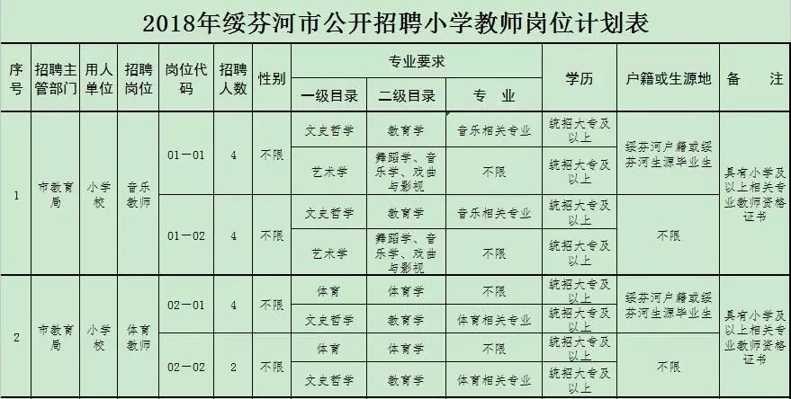 绥芬河市公开招聘小学教师公告