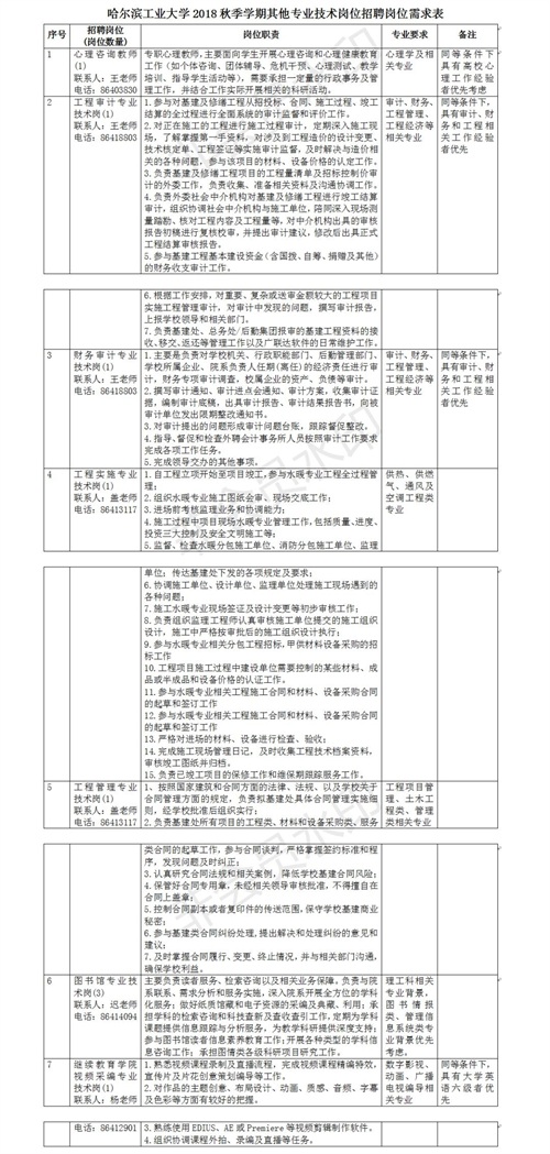 哈尔滨工业大学因工作需要按照“人才派遣”方式面向社会公开招聘其他专业技术岗位工作人员,招聘岗位共9个。