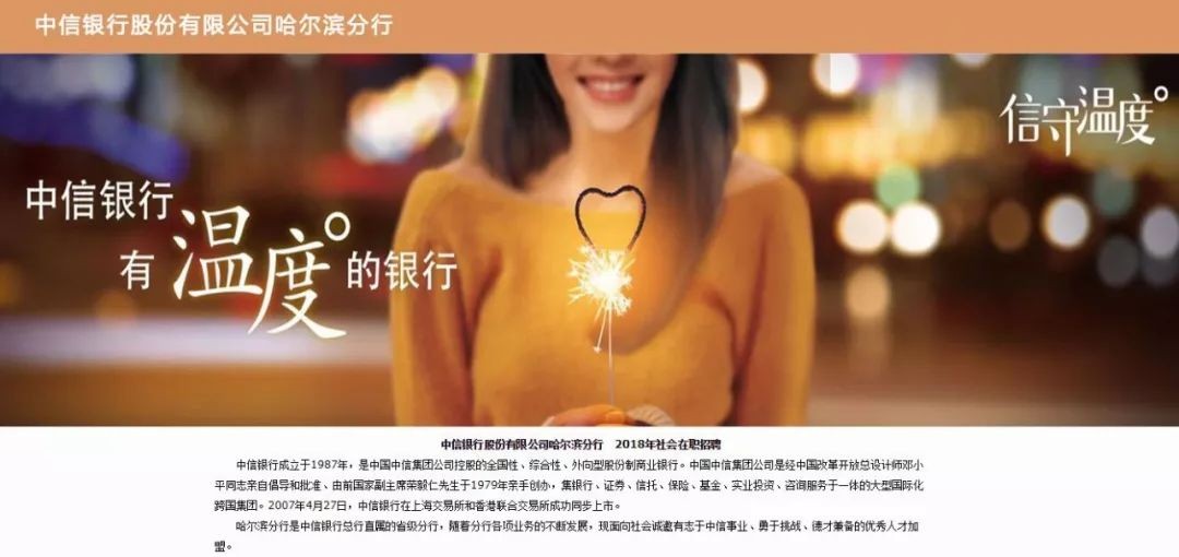 2018中信银行股份有限公司哈尔滨分行社会招聘公告