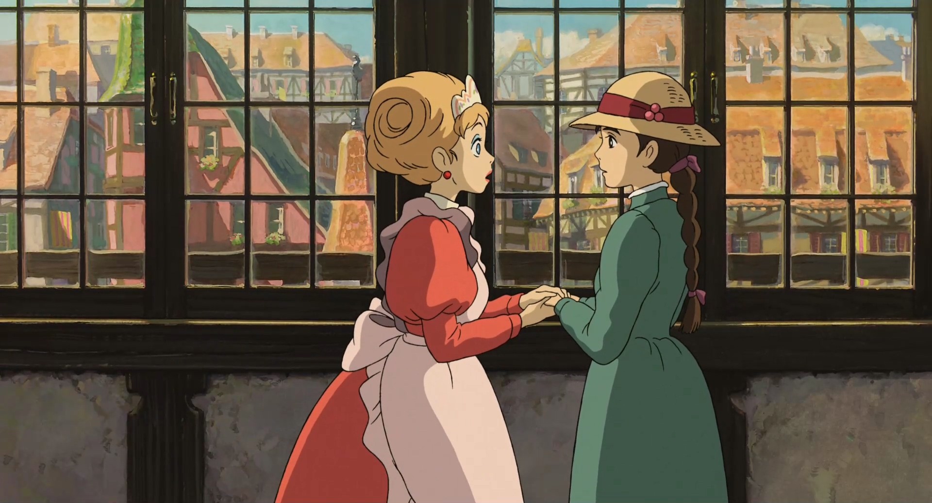 因这部动画取材自戴安娜•韦恩•琼斯的小说,并且宫崎骏在创作这部动画之初和团队在法、德两国交界处进行了取景和临摹,所以动画中的人物、着装、建筑等都是欧式风格。比如苏菲居住的小镇取景于德国海德堡(heidelberg),动画中小镇的建筑风格取自法国阿尔萨斯地区的街景。