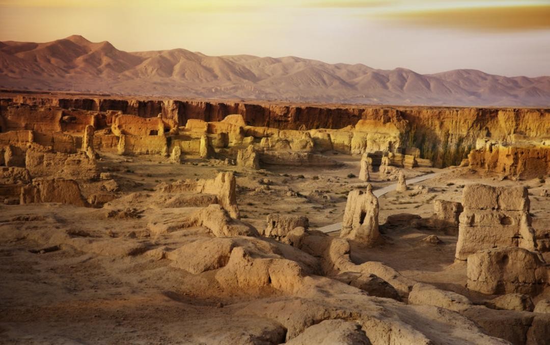 17. 海拔不足200米的苏莱曼山是吉尔吉斯坦人的圣山,处在丝绸之路重要路线的十字路口上,有“小麦加”的美称。这座山由五座山峰绵延交汇组成,山上的山洞里有100多处壁画。当地年轻人结婚时,必须要到这里许愿,庇佑他们的婚姻幸福长久。