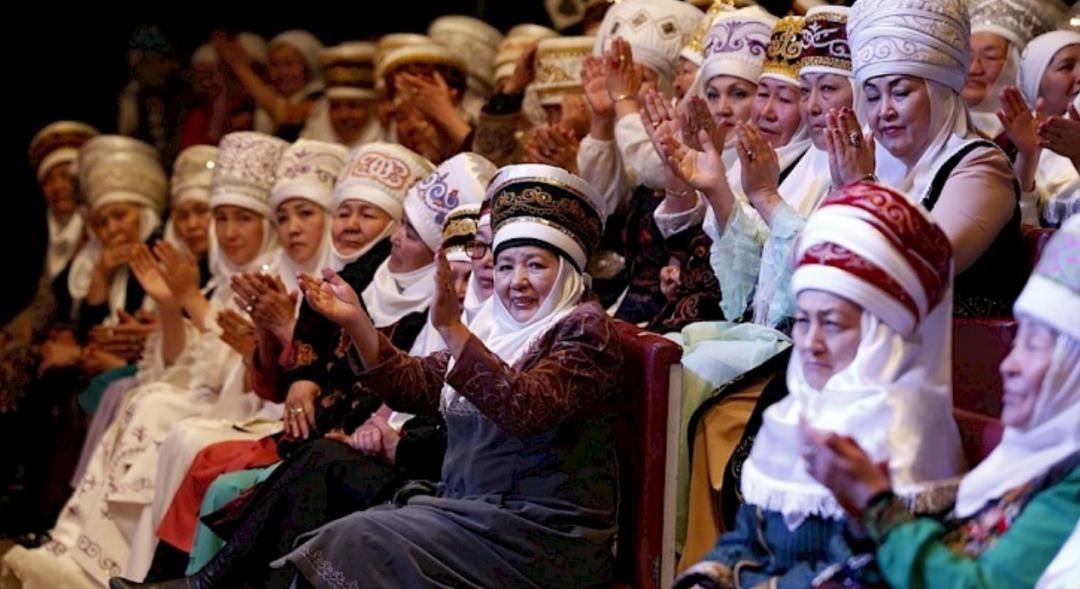26. 吉尔吉斯女人的传统头饰叫“艾丽切克”,由围巾,帽子,头巾组成,饰有贵金属制成的吊坠。