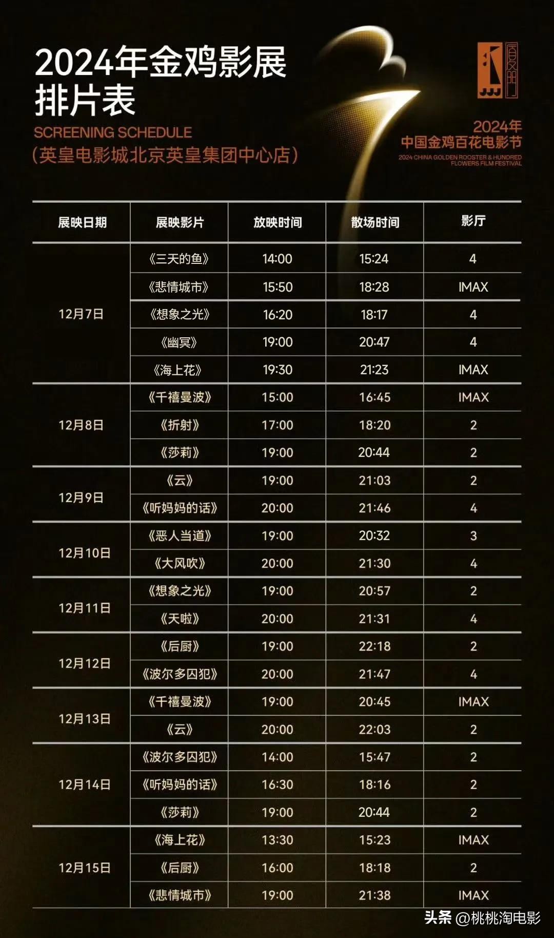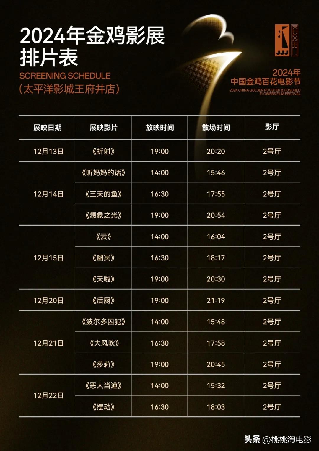 2024年金鸡影展以“大路”为题,携影同行,集结了70余部佳作,多为中国首映或亚洲首映,在金鸡奖颁奖典礼圆满落幕之际,金鸡影展将继续上路,于11月29日至12月22日在苏州、深圳、北京、成都展开巡展。