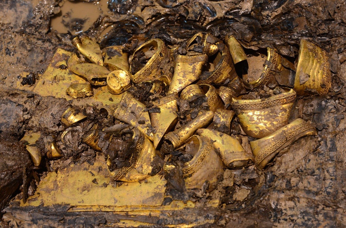 值得庆幸的是,由于盗墓贼是夜间作业,再加上时间不足,他们只打开了墓葬的一个小墓穴,从中盗挖出了金龙等文物,而旁边的一个更有价值的大墓却没有被他们发现。
