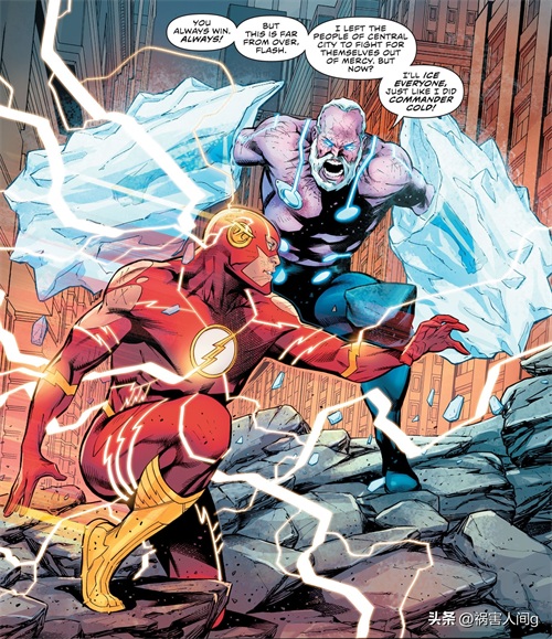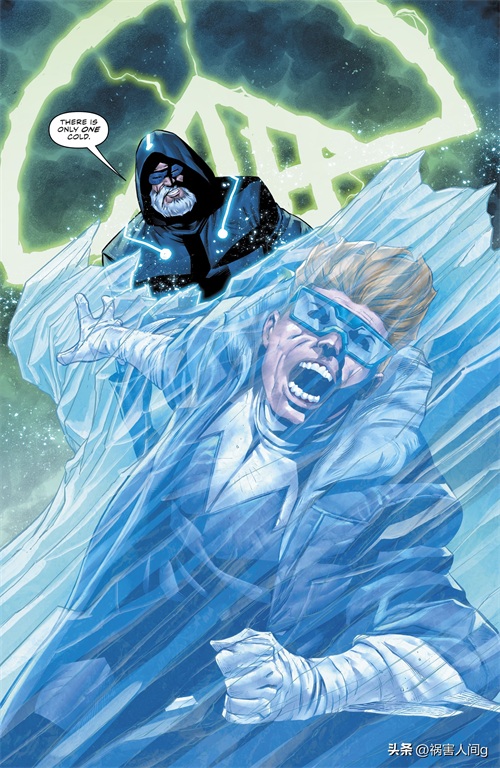 寒冷之王一瞬间就将除了闪电侠之外的所有人全部冻结。