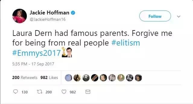 “劳拉·邓恩有着明星父母。请原谅我展现了真实的一面。 #精英主义# ”