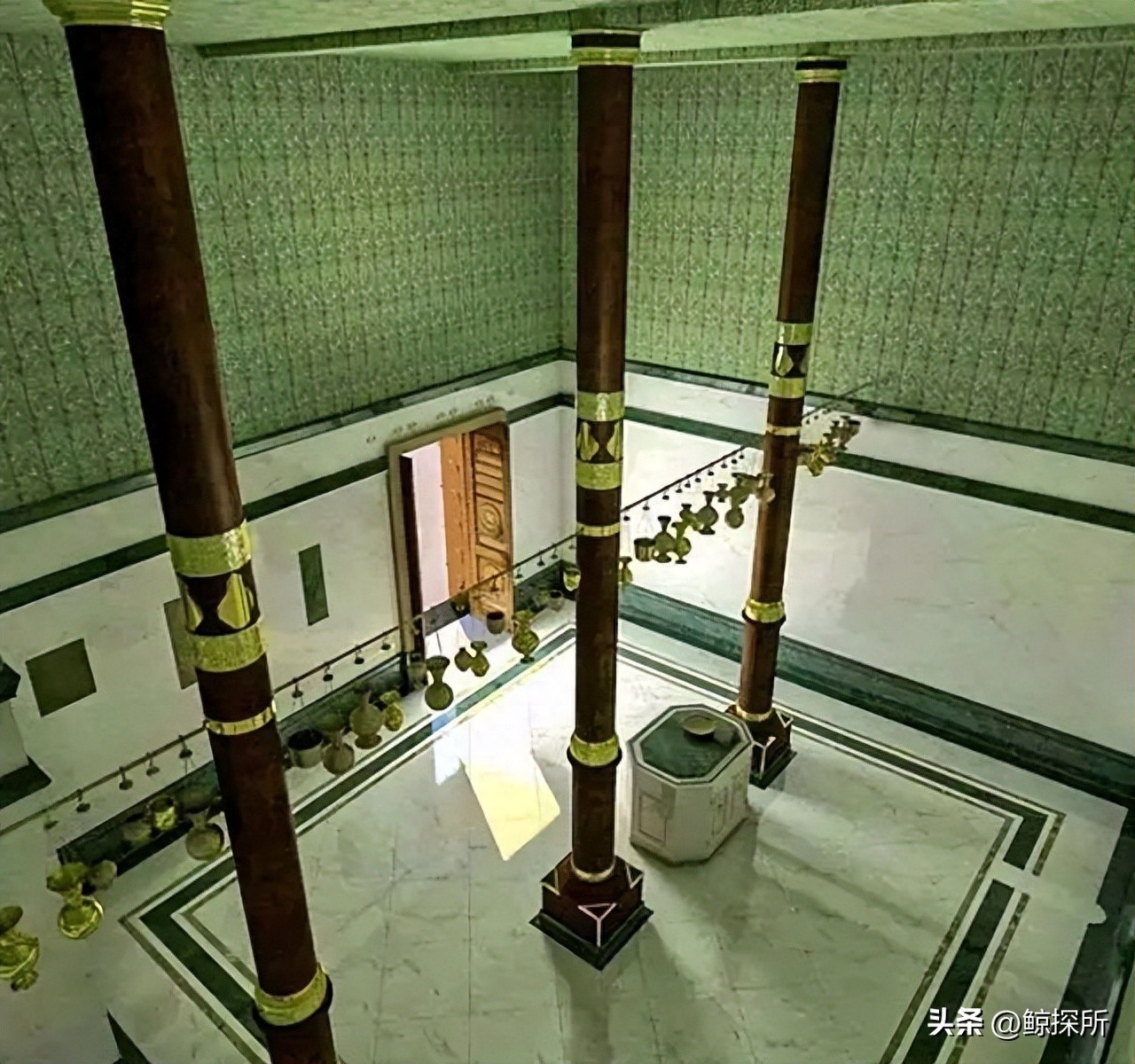 据披露的图片显示,内部装修简朴,以大理石地面和三根柱子支撑屋顶为主,其实天房内部更多具有象征意义,并没有金碧辉煌的装饰,也没有任何偶像。