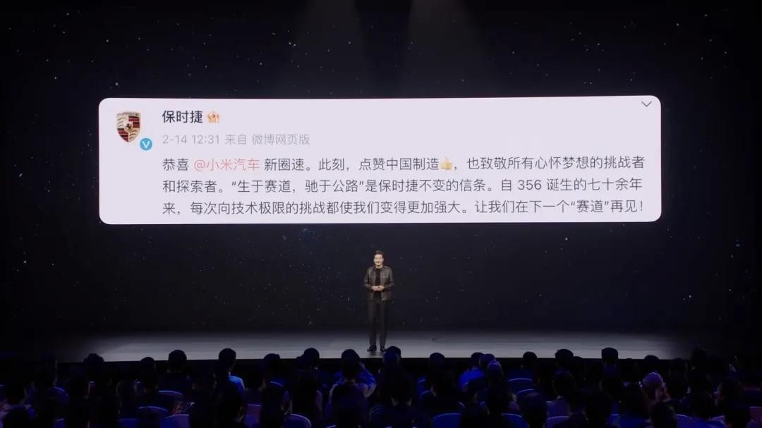 SU7的强大人气,让被其造型“撞脸”的保时捷也发博回应:恭喜小米汽车新圈速,并点赞了“中国制造”。