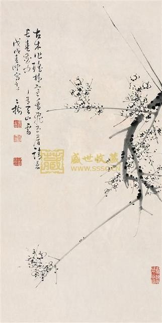 绍兴人童钰的梅花,受民间版画的影响。其梅花师法刘世儒《雪湖梅谱》,兼具墨梅始祖释仲仁及弟子扬无咎雅韵。在“扬州八怪”文人画一统天下的扬州,童钰“梅花”独劈蹊径,逍遥世外,并自嘲“我是人间避热人”。