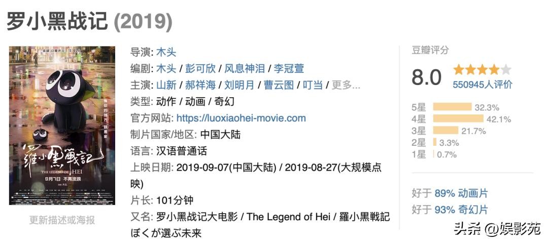 《罗小黑战记》作为一部国产二维动画电影。豆瓣评分8分,它不仅画面精美,故事也讲得非常舒服,情感拿捏得恰到好处。