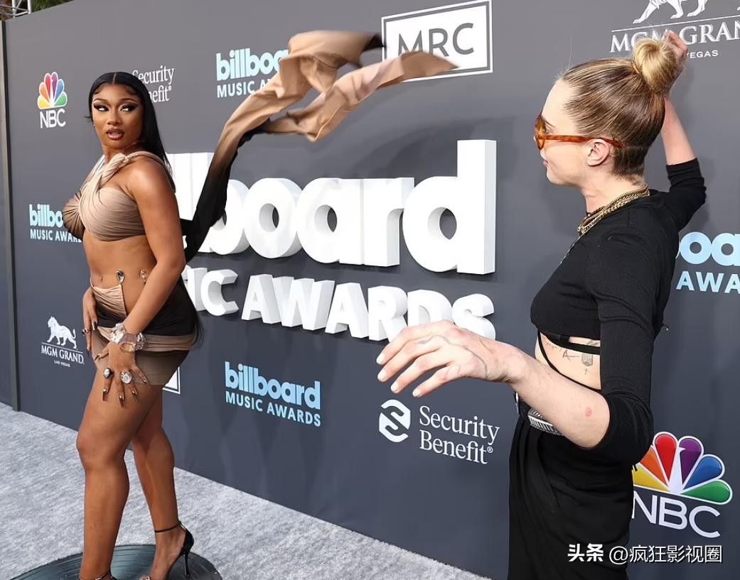 在2022年Billboard音乐奖红毯上,卡拉从身后偷袭,突然将梅根·斯特里恩的裙摆掀了起来。