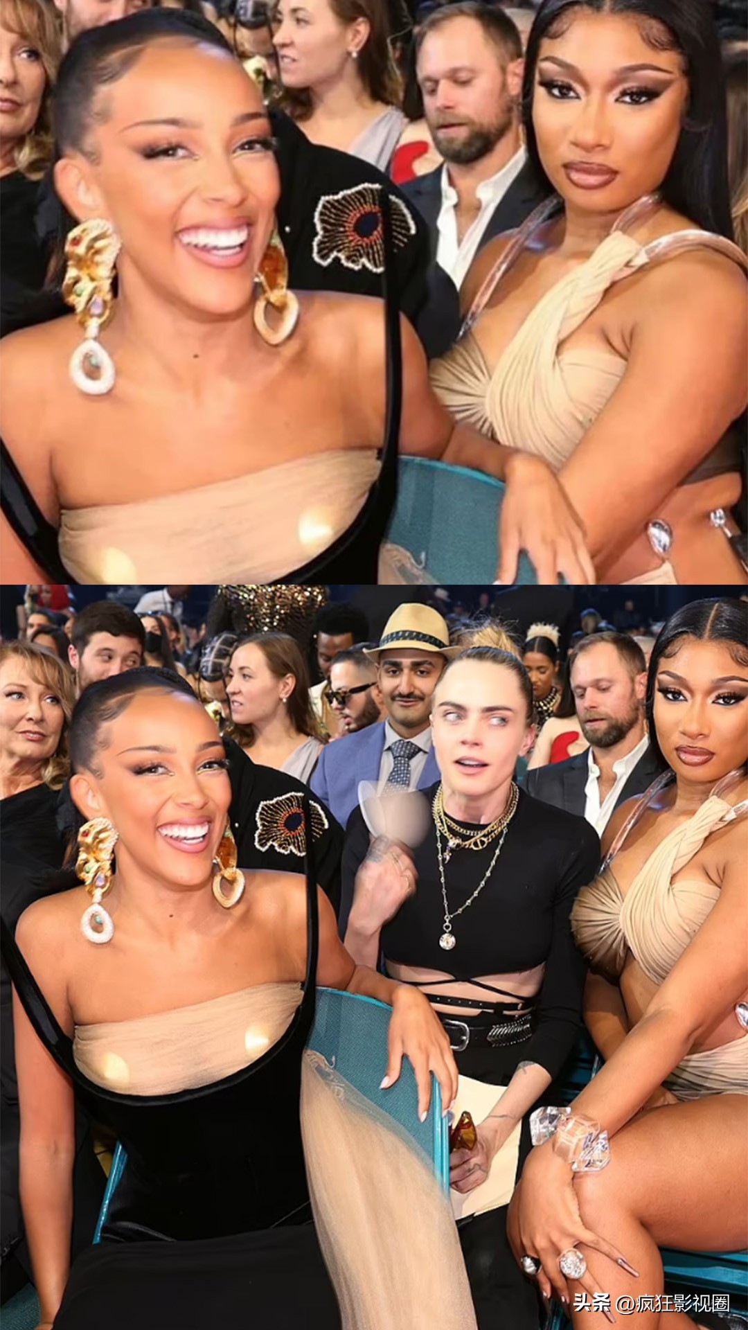 在观众席上,卡拉甚至上下其手,直接对摸梅根的敏感部位。