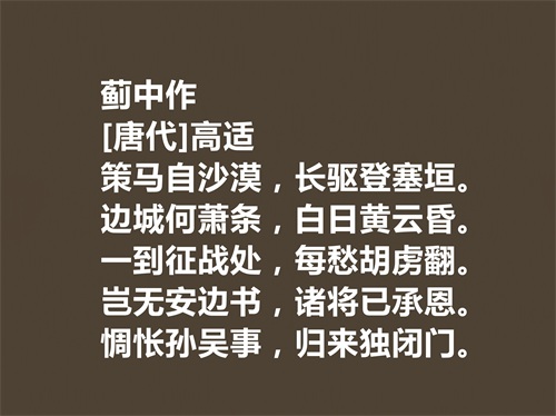 盛唐著名边塞诗人,高适十首诗,情感慷慨激昂,振奋人心,收藏了