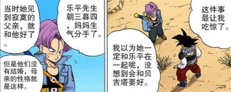 特兰克斯说,乐平的状态是朝三暮四,而贝吉塔则比较寂寞,布尔玛和贝吉塔只是生了孩子,两个人并没有结婚,他之前和乐平也没有结婚。