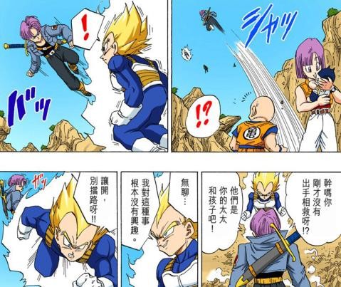 贝吉塔与布尔玛闪电生下特兰克斯,应该是《七龙珠》漫画中最令人咋舌的部分了,因为在弗利萨父子袭击地球当天,布尔玛还与乐平一起出现。