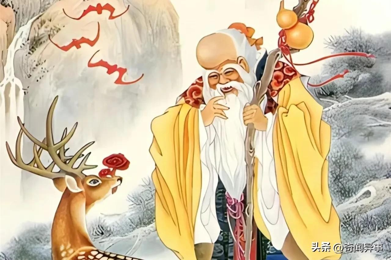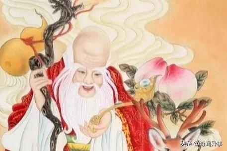 封神大战后,南极仙翁前往天庭,被天帝敕封为南极长生大帝,位列六御,执掌人间寿命的天界神仙,被视为长寿之神,别名寿星、南极老人星,形象为脑门隆起,一手持拐杖,一手捧寿桃。关于寿星额头的由来,相传是南极仙翁到昆仑山找元始天尊学道,学成后,元始天尊用聚宝匣击打其额头,后来聚宝匣化作一道金光飞入南极仙翁脑门,额头就此隆起。