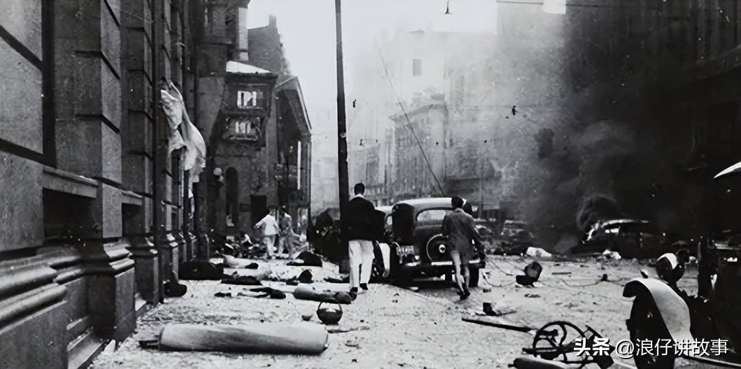 10.淞沪会战期间,日军战机轰炸上海市区的照片。