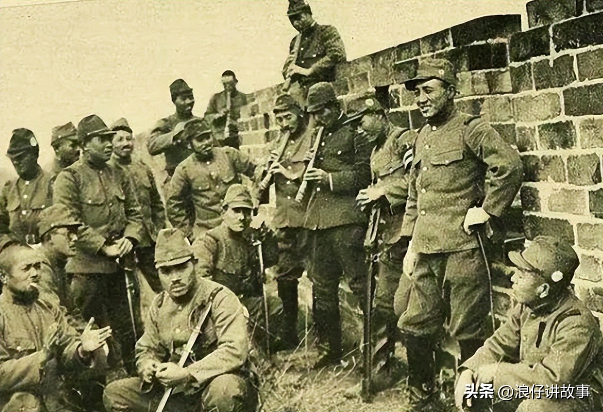 07.聚在城墙上,吹奏乐器自娱自乐的日军。
