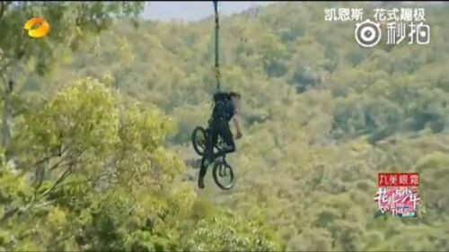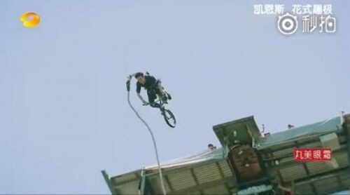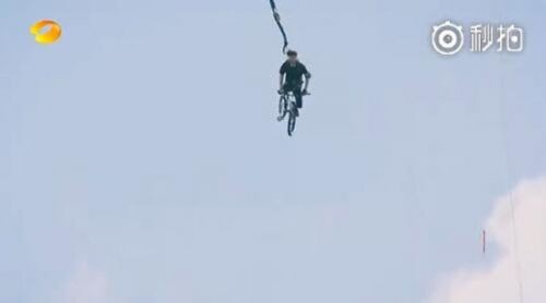 张若昀 三次蹦极,最后一次单车蹦极,在空中骑着自行车,帅到飞起啊!除了演戏耍帅唱歌以外无所事事。哦对了,我还会飞。