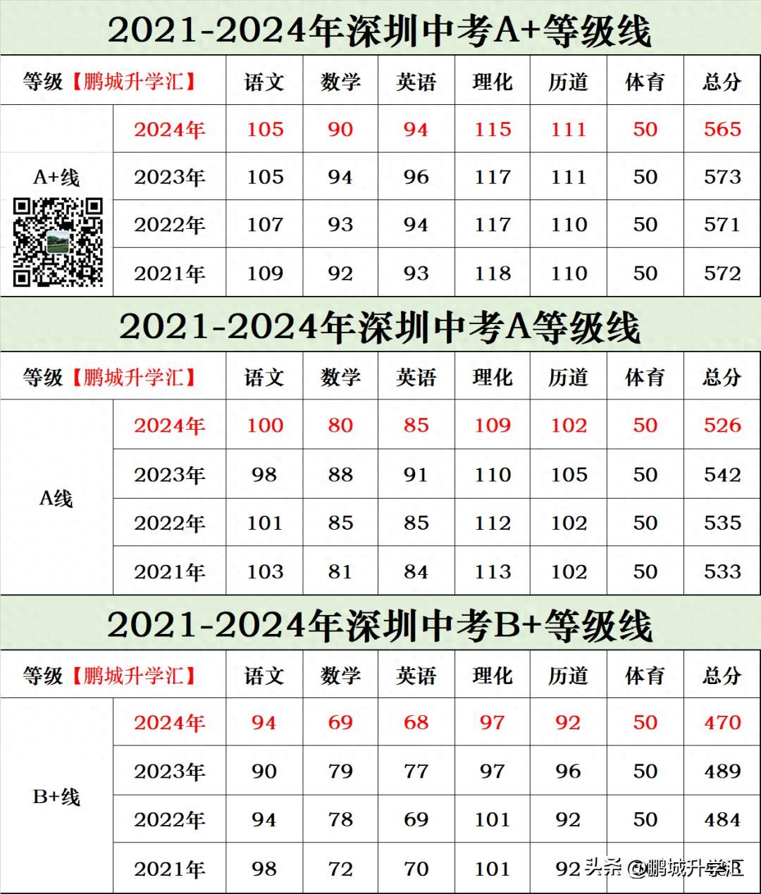 今天2024年深圳中考分数线出炉,从目前网上家长流传的信息可以看到今年的单科A+ A B+等级线相对于往年有不同程度的下降,之前网上流传各种2024年中考分数线的预测估计会打脸,从单科等级线下降来看,今年各公办高中录取分数线整体大概率下降,但不排除少数高中因为宣传热度和高考升学率持续上升而涨分!