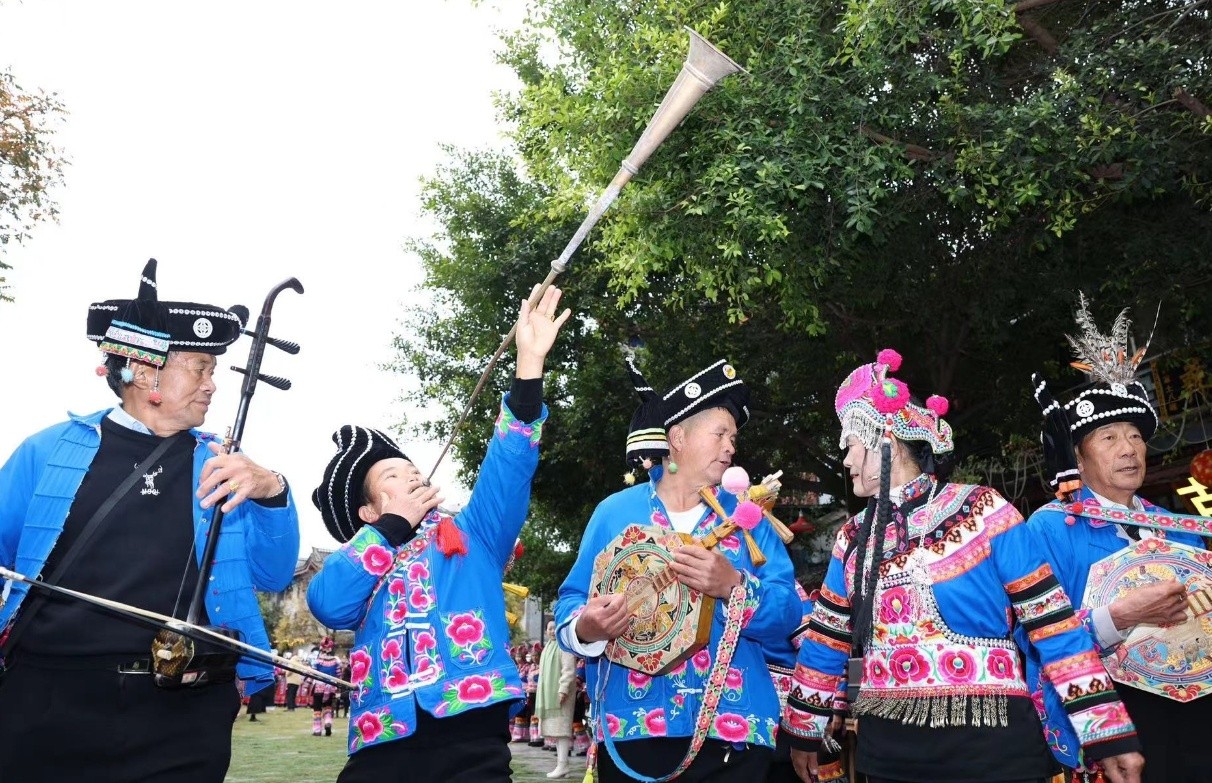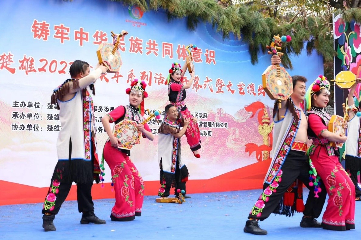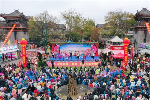 在彝人古镇毕摩广场,一场独具特色的歌舞联欢拉开了彝族年系列活动的序幕。德高望重的毕摩诵经祈福,祈愿来年风调雨顺、五谷丰登、岁岁平安。来自州民族艺术剧院、楚雄市艺术团等文艺院团的演员们,与彝族歌手联袂送上一个个极具彝族文化特色的歌舞节目和器乐表演,用歌舞表达心中最真挚的喜悦,释放彝家人最浓烈的热情,为现场观众带来了一场原汁原味、精彩纷呈的文化盛宴。