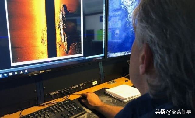 “海燕”号的工作人员通过探测器来查勘“赤城号”航母残骸的状态和数据