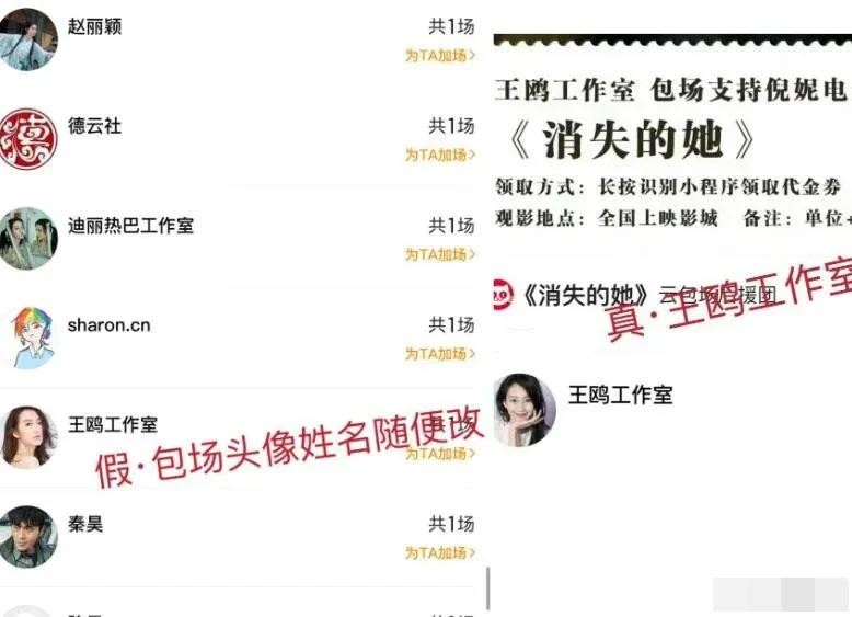 随后这件事经过发酵,万能的网友发现是有人用了王鸥的图片和王鸥工作室一样的名称为杨幂包场的,根本就不是王鸥真正的工作室包场的。
