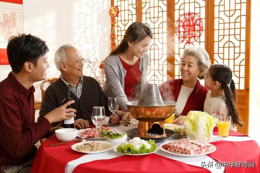 4. 吃团圆饭:除夕之夜,全家人会团聚在一起,共进一顿丰盛的年夜饭。