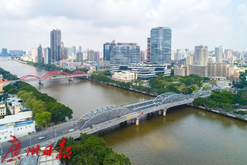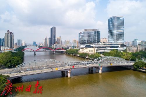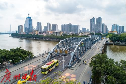 海珠桥是广州市连接海珠区和越秀区的跨江通道,横跨珠江水系上,是广州最早的中轴线组成之一、中国第一座钢结构开合桥、1963年版的“羊城八景”之一 、市区南北交通要道 。海珠桥全长356.67米,主桥全长182.90米,南北两跨对称布置。 海珠桥始建于1932年12月,建成于1933年2月15日,重建于1950年3月25日。海珠桥是广州市第一座也是当时唯一一座跨越珠江的大桥,它的建成方便了珠江南北两岸人民的生活,加快了广州的城市建设与发展。海珠桥是广州市的近代历史标志性建筑之一,见证了广州工业文明和城市发展的历史过程。文、图/广州日报·新花城记者 苏俊杰