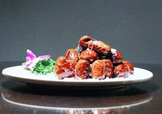 拔丝大枣,赞皇县的一道特色美食,因其独特的烹饪工艺和口感成为当地百姓招待亲朋的必备菜。拨丝大枣以色泽红亮、质地柔软鲜嫩的赞皇大枣为制作原料,经挂糊炸后,裹匀一层糖液,再用糖丝缠住炸好的大枣即可。糖丝与大枣的结合,形成了口感甜脆的味觉体验,深受人们喜爱。