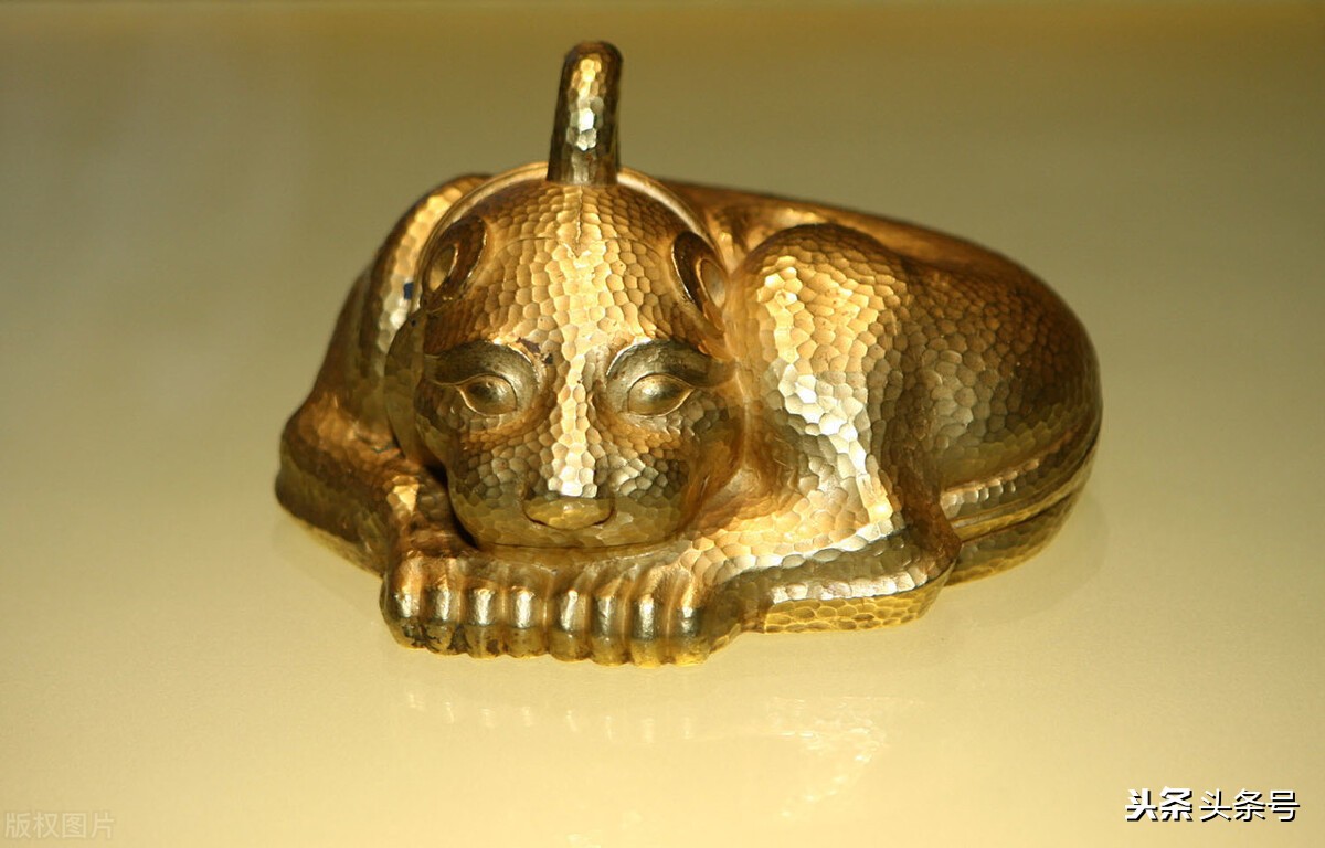 1982年出土于江苏省盱眙县南窑庄窖藏。为西汉时期金兽,通高10.2厘米,身长16厘米,身宽17.8厘米,重达9100克,含金量达99%。空腹、厚壁,浇铸成形,是迄今我国出土文物中最大最重的金器,被誉为“国之瑰宝”。
