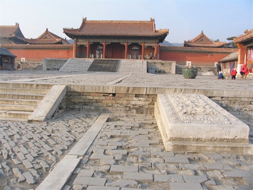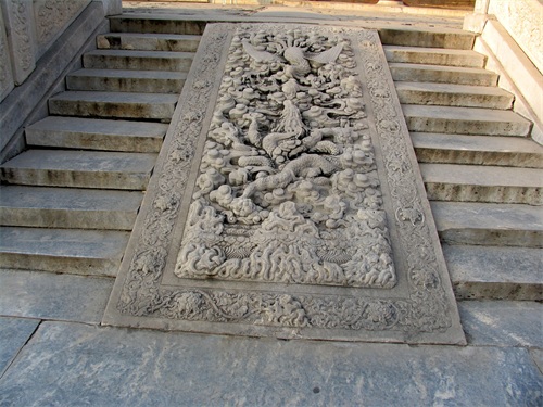 隆恩殿前月台正中有一块“凤压龙”图案的丹陛石