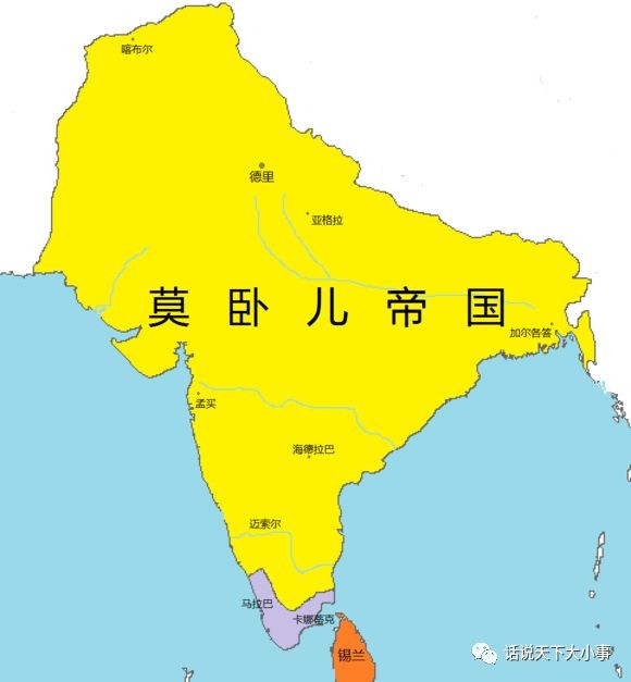 1526年4月,德里苏丹王国在巴布尔的攻击下屈服了。巴布尔坐上了德里的皇位,建立了莫卧儿王朝。莫卧儿帝国仍沿用原有的紊乱的行政制度,只有依靠军事机关的效能才不致于分裂。莫卧儿帝国,正是这种状况的封建王朝。至17世纪中叶,印度大部分领土都处在莫卧儿帝国的统治之下。莫卧儿帝国北面以喜马拉雅山脉为界,西部据有阿富汗的喀布尔一带,东边则达到阿萨姆的边境。莫卧儿帝国的统治者向德干高原和半岛南部继续扩张,它在南方边界是不固定的,它是印度历史上深入南部领土最广大的政权。莫卧儿帝国的版图除整个北印度外,还包括克什米尔、东俾路支和阿富汗领土的一部分。到18世纪初,除印度次大陆的极南端即科怫里河以南外,整个印度都并入了莫卧帝国的版图。17世纪,莫卧儿帝国为了支付进行扩张战争的经费,镇压日益兴起的农民运动、部族起义,也需要巨大军费,税收大大增加。马拉塔、锡克教徒和贾特人的起义,使莫卧儿帝国在德干高原和旁遮普以及腹地的战争常年连绵不断,耗尽了王国的财政和军用资源。各地的起义,使整片整片国土脱离了莫卧儿帝国,国库收入减少,赐予分封主的国有土地锐减,封建主也离心离德了。人民运动和各地起义沉重打击了莫卧儿帝国,使它处于风雨飘摇之中。