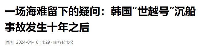 信息来源:南方都市报——一场海难留下的疑问:韩国“世越号”沉船事故发生十年之后
