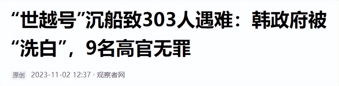 观察者网——“世越号”沉船致303人遇难:韩政府被“洗白”,9名高官无罪