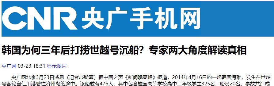 央广网——韩国为何三年后打捞世越号沉船?专家两大角度解读真相