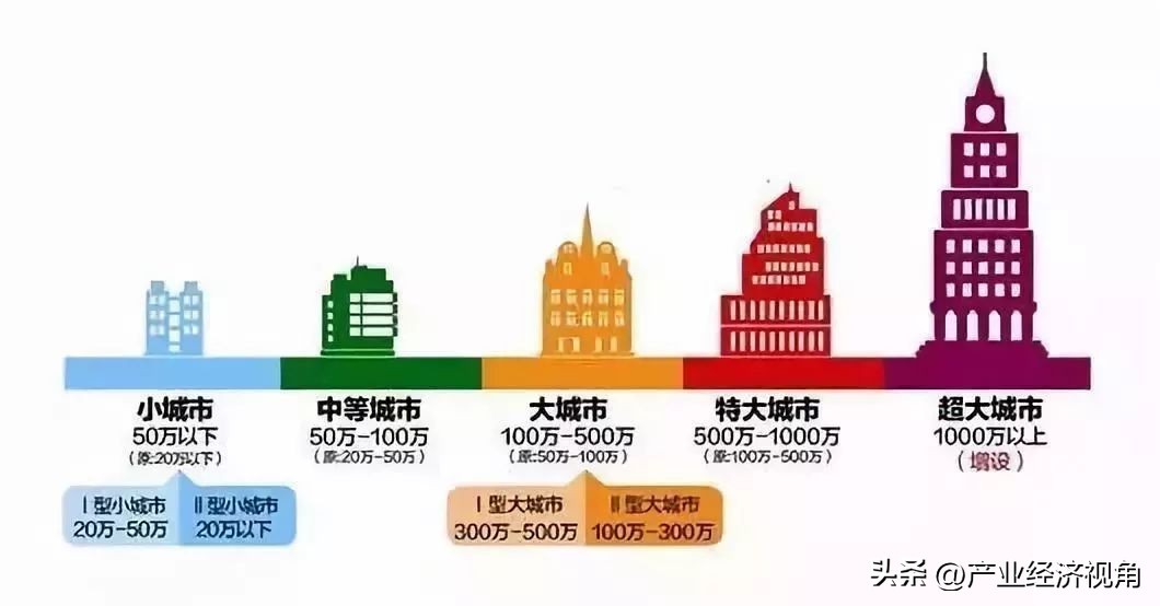 小城市:城区常住人口50万以下,其中20万以上50万以下的城市为Ⅰ型小城市,20万以下的城市为Ⅱ型小城市。