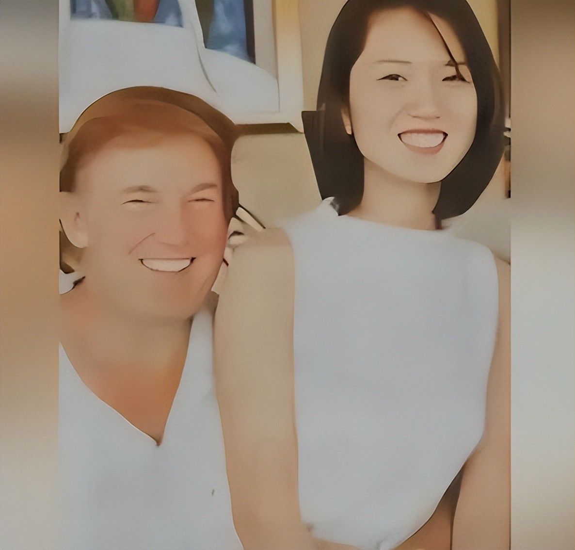 这张照片拍摄于香港,里面一位美丽动人、面带笑容的华人女子坐在特朗普的大腿上,而当时还年轻的特朗普也明显对此非常满意,脸上是掩盖不住的笑容。