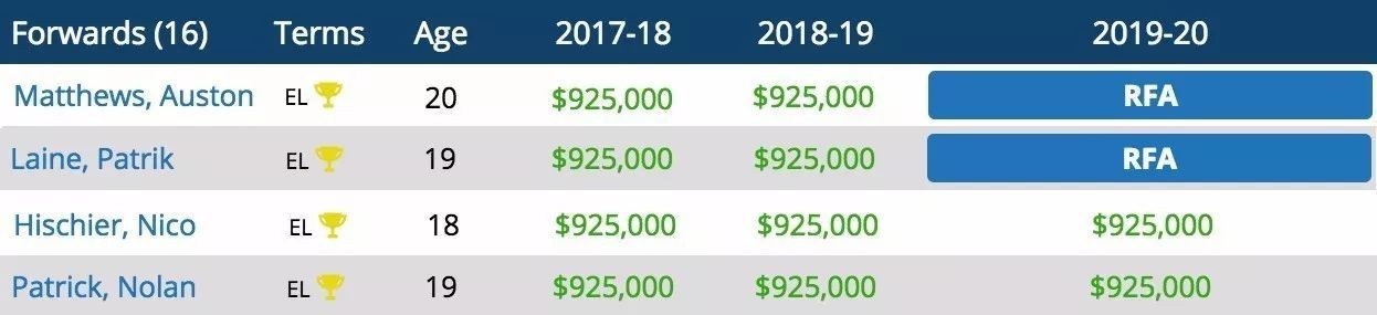 这其中,最惨的当属NHL的新人球员,首次进入NHL的新人与球队签订入门级合同 (Entry-Level Contract),入门级合同年薪上限只有925,000美元,也就是说,NHL新人的固定年薪还达不到百万美元级别。